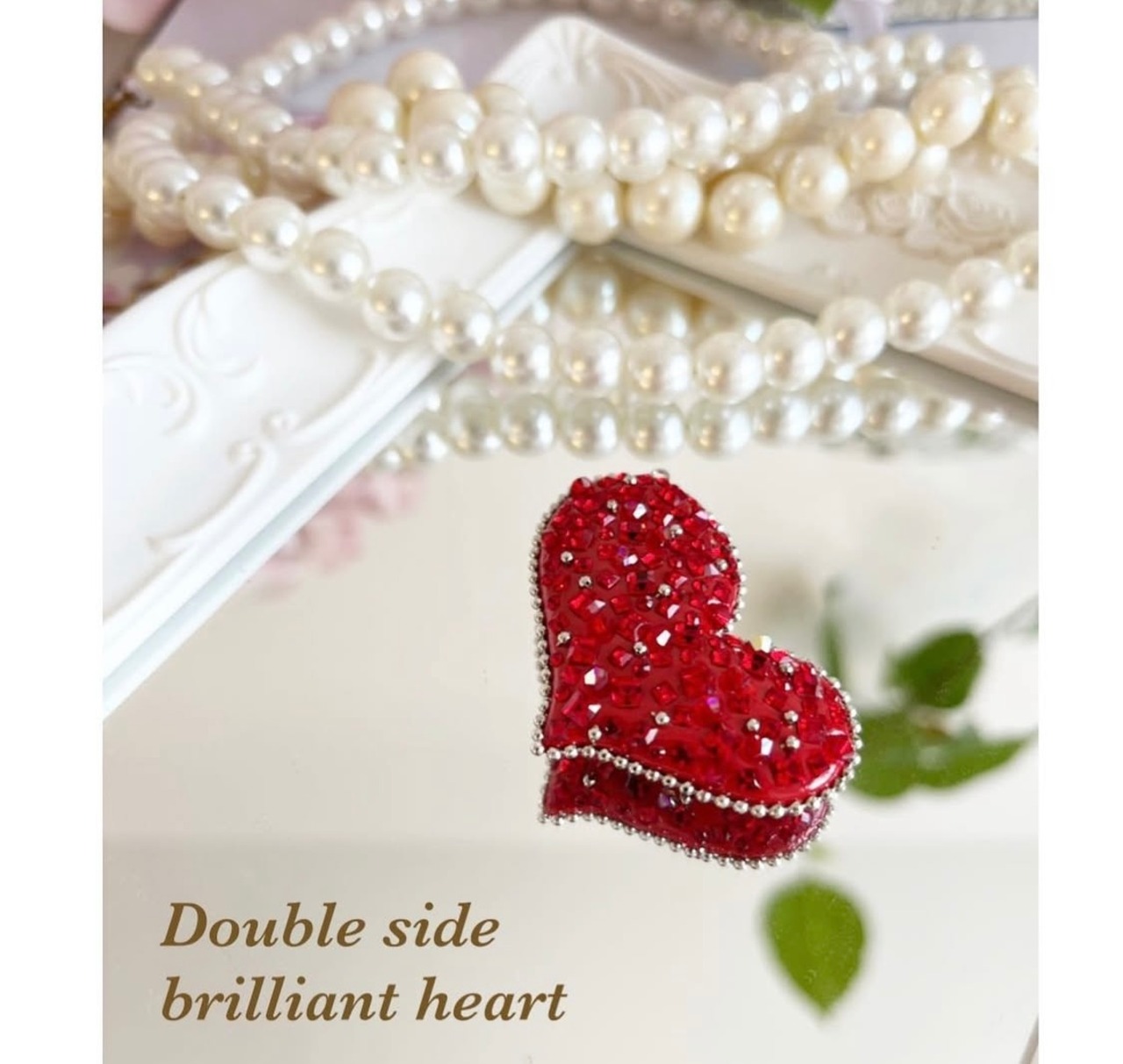 両面キラキラハートのバッグチャームを作りました。どちらもキラキラ可愛らしく輝きます。